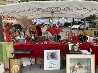 In den Sommermonaten Mai bis Oktober bin ich, zusammen mit rund 300 anderen Anbietern, samstags jeweils von 7 bis 17 Uhr am Flohmarkt am Bürkliplatz in Zürich zu finden.